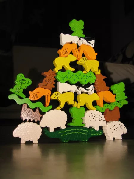 The animals want to show how good they are at making tall pyramids! They must be skillfully careful: Who will position the penguin on top of the crocodile, the sheep on top of the penguin, the serpent on the sheep? The hedgehog wants to stand on top of the pyramid but the height is making him dizzy.